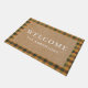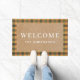 Porta-boas-vindas para o outono, com um padrão de xadrez verde e laranja enferrujado vintage com nome de família personalizado.