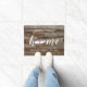 Mostre algum orgulho do estado de casa com este bonitinho tapete rústico de madeira em prancha apresentando "casa" em letras de escrita em branco com um mapa da silhueta do estado do Tennessee em pé para a letra "O". Um dentro cor-de-rosa para ilustração cardíaca no mapa do estado completa o design; você pode mudar a posição do coração para sua cidade natal abrindo a ferramenta design e arrastando a forma do coração para seu lugar favorito. Personalize com sua cidade natal, seu nome familiar e ano estabelecidos para criar um toque perfeito para sua porta dianteira, ou um presente memorável de inauguração de casa.
