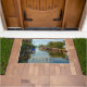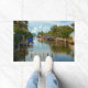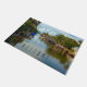 Relaxe com a calma e pacífica vista nesta porta. Esta fotografia original de ZoeSPEAK é uma longa vista de um canal na Ilha Estero, na Flórida. Na extremidade oposta da via navegável, perto do horizonte, está a ponte para o continente. O céu azul está cheio de nuvens brancas puffy, árvores tropicais e barcos que alinham o canal, e um reflexo da bela cena completa esta imagem de vida costeira. Há um texto que diz "BEM-VINDO". Esta opção está definida para você personalizar ou excluir se preferir.