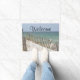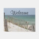 Dunas de areia bonito com grama e a cerca resistida na praia. O texto lê a "boa vinda" mas sente-a livre adicionar, mudar, ou remover se você gosta.