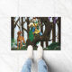 Um elfo de cabelo vermelho e seu cão caçador estão em uma floresta na caça!