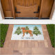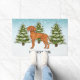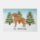 A ilustração original de um bonito cão da raça Vizsla Húngara, de Destei. O cão é colocado numa cena de inverno com três árvores de abeto verde e neve caindo. O fundo é um gradiente azul a branco que dá à design aquele olhar frio do dia de inverno. Há também uma área de texto personalizável para um nome.