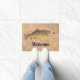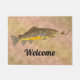 Truta marrom depois de uma isca de pesca de mosca. Bem-vindo. Truta desenhada pela artista ©Tina Hesskew de Fisheries Hunting Life.