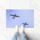 A door mat featuring a photo of two WWII T66 airplanes in formation.