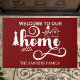 Diseño de Doormat con tematica navideña y la frase "Welcome to our Home" con el Nombre de tu familia personalizable!. Decore su casa con este lindo diseño de Tapete para Puerta Navideño. El modelo se personaliza con el nombre de tu familia.