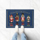 Porta do Invólucro Personalizado - Seasons Saudações Bem-vindos convidados em estilo festivo com esta porta personalizada do Invólucro Noz. Quatro charmosos soldados Nutcracker estão orgulhosamente no centro desta design, colocados contra um fundo azul tom-a-tom profundo com folhas e bagas ocas. O topo do tapete apresenta as palavras "Saudações da Época", enquanto o fundo oferece um espaço para personalização, fazer-o como um acréscimo exclusivo ao seu decoro de feriado. Perfeito para as entradas, esta porta adiciona um toque de magia e calor tradicionais de Natal à sua casa.