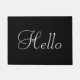 Porta com "Olá" branco sobre fundo preto. Personalizável.