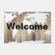 Tapete White World Map Rustic Wood Planks Bem-Vindo