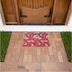 Formato de porta num padrão têxtil William Morris Art Nouveau, melhorado digitalmente e colorido - peônias estilizadas e folhas em tons de vermelho, vermelho vívido e branco chinês profundo, contra cinzas/cinzas prateadas médias