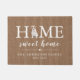 Um doce tapete caseiro personalizado com um cão Wire Haired Jack Russell, com seu nome de família e ano estabelecidos, colocado em uma maca marrom. Visite nosso compro para ver esse design mais de 50 raças de cães!
