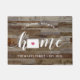 Mostre algum orgulho do estado doméstico com esta fofinha porta de prancha de madeira rusticada apresentando "home" em letras de escrita em caligrafia branca com um mapa da silhueta do estado de Wyoming em pé para a letra "O". Um dentro cor-de-rosa para ilustração cardíaca no mapa do estado completa o design; você pode mudar a posição do coração para sua cidade natal abrindo a ferramenta design e arrastando a forma do coração para seu lugar favorito. Personalize com sua cidade natal, seu nome familiar e ano estabelecidos para criar um toque perfeito para sua porta dianteira, ou um presente memorável de inauguração de casa.