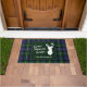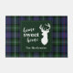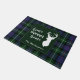 Um doce tapete natalino, doce, em casa, que você pode personalizar facilmente clicando no botão "Personalizar", apresentando a silhueta de veados e o clã MacKenzie tartan em verde e cheque roxo. Perfeito para bater na porta da frente durante os feriados. Faz um presente de excelente