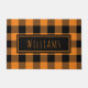 Bem-vindos à sua família e amigos este outono com este nome personalizado doormat em laranja rústica e xadrez negra de búfalos. Personalize-o com o seu nome familiar ou com uma palavra da sua escolha num painel central em letras laranja modernas a preto com uma borda laranja. Excelente para toda a temporada de outono do Halloween ao Dia de Ação de Graças. Projetado por © Tim Coffey.