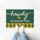 Dar as boas-vindas ao Texas a todos que vêm a sua casa com esta design. A palavra "uivo" rastejou através de uma grande fonte escrita à mão sobre a forma do estado. Personalize com seu nome de família ou mensagem adicional. A xadrez de Buffalo combina cores de escolas estaduais com preto para um olhar eterno. Design disponível em laranja queimado, verde, vermelho, roxo, laranja/marinho, amarelo, amarelo/verde e marrom. Faz um presente excelente de inauguração.