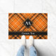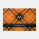 Amostra de xadrez moderno de Halloween laranja e preto. Texto personalizado e monograma.