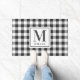 Pormatura personalizada, em estilo de fazenda, com monograma personalizado e nome da família em xadrez de búfalo/gingham/padrão festivo preto e branco.