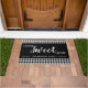 Portão russo da casa doce personalizado com o nome da família.O padrão de xadrez de gingham preto e branco adiciona um olhar rústico para o seu decor da entrada.