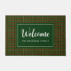 Adicione um estilo festivo de na moda à sua entrada com esta porta de robalo de xadrez de búfalos rústica, em verde e vermelho, com sotaques de ouro. Design apresenta "Bem-vindo" na tipografia de estilo na moda elegante. Personalize com seu nome de família ou citação favorita. Aproveite!