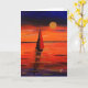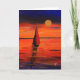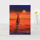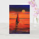 Uma pintura colorida de uma bota de vela que navegava até ao sol da noite