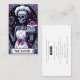 Um único padeiro com tema "Tarot", cartão de visita de pastelaria com um esqueleto com bolo e uísque. Um estilo único com um padeiro esqueleto no chapéu de chef.