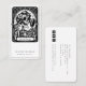 Um cartão de visita de maquiagem único com um esqueleto aplicando maquiagem, com o slogan "beleza eterna". Um estilo único e elegante com um toque de humor. Redes sociais nas costas.