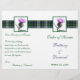 Este cobrir da Ordem de Serviço com duas folhas tem a flor da Escócia, o caroço, enquadrada em verde, sentada sobre uma banda de xadrez MacKenzie Dress Tartan que pode ser mudada para seu ladrão de clãs por e-mail para o endereço abaixo. O lado oposto deste papel é o vazio que lhe permite impressão seu programa de casamento nele usando seu jato de tinta ou impressora laser doméstico, ou você pode usá-lo apenas como um cobrir de livreto e então montar seu programa com uma fita ou gravata. Há também material de estoque de 5,5x8,5 que você também poderia usar como uma inserção extra, se necessário. Se você quiser que seu programa seja impresso nestas mesmas cores, basta enviar um e-mail para mim em niteowlstudio@gmail.com e terei todo o prazer em compensá-lo em uma página separada. A coleção de casamento correspondente é mostrada abaixo.
