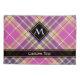 Design de cor rosa, ouro amarelo e azul-tartan. Um padrão perfeito. Texto personalizado e monograma.