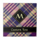 Design púrpura, ouro amarelo e tartã azul. Um padrão perfeito. Texto personalizado e monograma.