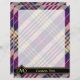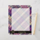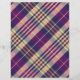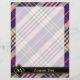 Design púrpura, ouro amarelo e tartã azul. Um padrão perfeito. Texto personalizado e monograma.
