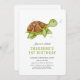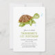 Este belo convite é ideal para um primeiro aniversario, mas pode ser adaptado para qualquer ocasião. Apresenta uma tartaruga aquarela sob o gráfico do mar e a simples tipografia. Fácil de personalizar para qualquer idade com todos os detalhes do seu partido.