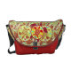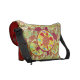Tartaruga de mar dentro da tartaruga de mar cores vermelhas/alaranjadas/amarelas. Tartaruga de mar com um design de uma tartaruga menor, e peixes coloridos múltiplos contra o fundo modelado. Tartaruga de mar art. Esta bolsa mensageiro tem o design na parte externa.