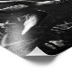 Foto preta e branca de uma tartaruga marinha nadando perto de um recife de coral numa impressão de fotografia.