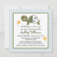 Uma tartaruga bonito veste um par de fraldas com um coração nele guardarou por um pino azul da fralda. Estes fazem convites doces do chá de fraldas para a mamã que espera pacientemente a chegada de seu bebé novo. © Chrissy H. Estúdio dos trabalhos de arte, LLC. Todos os direitos reservados.