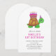 Este convite bonito é ideal para um primeiro aniversario feminino, mas pode ser adaptado para qualquer ocasião. Possui um desenho de tartaruga rosa e verde e uma simples tipografia. Fácil de personalizar para qualquer idade com todos os detalhes do seu partido.