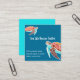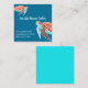Tartarugas marinhas ilustradas como cartões de visitas. Cartões quadrados em azul escuro com texto branco e duas tartarugas de natação. Nome comercial no centro e 1 a 4 linhas no canto inferior. O reverso é aqua azul.