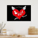 Esta poster divertida tem a aparência vintage de um coração de tatuagem alada, em um fundo preto.