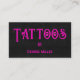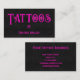 Este modelos de cartão de negócios profissionais de tatuagem criativa, cor-de-rosa-claro, apresenta um fundo preto, letras negras com cabeças de crânio gótico. design de textura legal e única. Imagem copyright Marg Seregelyi Fotografia.