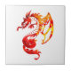 design decorativa de um dragão, lagarto ou serpente em chamas como vermelho e laranja num azulejo cerâmico.