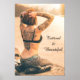 Mulher linda meditando lá fora, poster zen que diz, "Tatuado e Bonito" mas você pode remover o texto ou mudá-lo para o dia o que quiser.