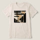 Apresentado é um design geométrico, abstrato em formas e linhas de touro, bronzeado e preto em uma ponta contemporânea ao estilo de design Moderno do século Médio. Foto aqui em uma camiseta Bella+Canvas Tri-Blend na impressão clássica, com outros estilos e cores disponíveis.