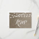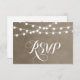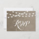 Design de placa de resposta RSVP de casamento moderno de verão com simples luzes de cordas brilhantes e elegantes penduradas no topo e uma mistura elegante de fontes modernas e caligráficas em um fundo de textura faux color. Um design de pré-disquete simples e na moda, perfeito para o verão! Clique no botão PERSONALIZAR TI para personalizar fontes, mover texto e criar seu próprio design de convite exclusivo.