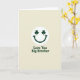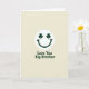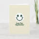 Este cartão de saudação apresenta uma face sorridente verde-escura centrada em um fundo esbranquiçado cremoso, com um sorriso curvo que parece um piscar de olhos amigável do outro lado da sala 💚. Seus olhos são substituídos por dois trevos de três folhas bem-feitos, adicionando um toque do Dia de São Patrício que parece uma piada interna compartilhada entre irmãos próximos ☘️. O espaço aberto ao redor da face mantém o foco nessa expressão calorosa, como se o personagem estivesse olhando diretamente para o seu irmão com afeto fácil. Abaixo do gráfico, as palavras “Love You Big Brother” estão em uma única linha, alinhadas ao centro e definidas em um estilo sem serifa robusto. A letra combina com o mesmo verde-escuro do sorriso, unindo visualmente a mensagem e a face. O fundo esbranquiçado tem uma aparência suave e levemente texturizada, como uma granulação de papel suave que mantém a cena calma e simples. Algumas pequenas variações tonais no fundo creme fazem com que a tinta verde se destaque, enquanto os olhos de trevo permanecem nítidos e uniformemente moldados. A composição permanece minimalista: sorriso verde acima, texto verde