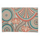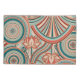 This nouveau style abstract design radiates movement in concentric circles and flowing lines in soft turquoise, coral, and cream tones.