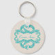 O Chaveiro elegante e sofisticado de "Chic Damask", com um fundo bege suave, e um na moda amortecedor florescem em turquesa. Esta design moderna é fácil de personalizar com o seu próprio texto. Clique em "Personalizar" para encontrar mais opções de personalização.