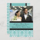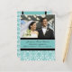 Anúncio do casamento Cartões postais em elegante azul-turquesa, preto e branco, cor damasco floral clássico, personalizável com seus nomes, fotos de casamento e detalhes de casamento, a maneira perfeita de anunciar seu casamento para amigos e familiares. Disponível em uma grande variedade de produtos de casamento correspondentes.