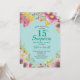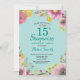 Convite de Aniversário para 15 de Surpresa Floral para Mulheres. Camada De Água Floral, Teal Aqua Turquoise Fundo. Para mais personalização, clique no botão "Personalizar" e use nossa ferramenta de design para modificar este modelo.