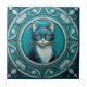 Teal e aqua Blue Faux alivio Art Nouveau Cat