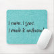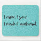 Adicione um toque divertido ao seu escritório doméstico ou ao seu espaço de trabalho com uma Tela Glitter Teal "Eu o fiz estranho" Mousepad. Mousepad design apresenta o texto "Eu vim. Eu vi. Eu o fiz estranho." em uma fonte escrita à mão contra um fundo brilhante e brilhante. Itens de presentes adicionais disponíveis com este design, bem como uma variedade de cores.