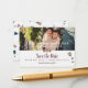 Uma floral elegante Salve o cartão de Data com rosas verdes e beges. Carregue facilmente a sua imagem ou transfira este design de casamento vintage para outra placa. Belo trabalho de arte de rosa de jardim é versátil para temas de burgundy e verde da floresta. Também um jogo para marfim, cor-de-rosa poeirento, pêssego poeirento, temas de casamento botânico bege.