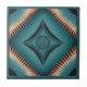 Um design de padrão geométrico simétrico em formato quadrado com um esquema de cor de lacre e cobre. O centro apresenta um grande medalhão em forma de diamante com uma intrincada obra de linha e um dentro circular de padrão de explosão solar. O medalhão é rodeado por quatro estruturas menores em forma de diamante com padrões de borda de ornamentado. O fundo tem um efeito radiante de explosão solar emanando do centro, criando um sentido dinâmico de movimento. A borda externa consiste em picos com forma de swtooth e jagados em tons de cobre contra o fundo do choco. O design inteiro é delimitado por uma borda de linha pontilhada fina. A paleta de cores transita de uma paleta profunda no centro para tons de turquesa mais leves próximos às bordas, com sotaques de cobre nos picos e elementos decorativos. O padrão tem influência nativa americana ou sudoeste design com suas formas geométricas e motivos radiantes.